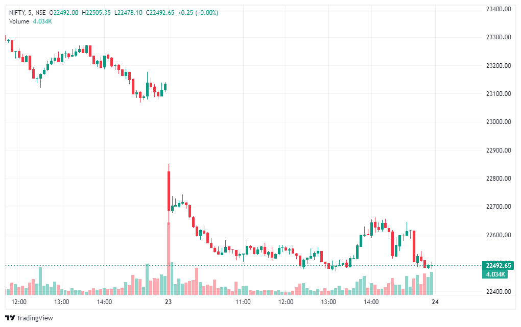 आज दिनांक को 23/03/2026 के दिन जैसे कि शेयर मार्केट 9:15 मिनिट पर शुरू हुआ वैसे ही निफ़्टी 499 पॉईंट गिर गई जिससे निफ़्टी का गिरफ गिर गया और बहुत तेजी के साथ निफ़्टी नीचे की ओर गिरता चला गया और शाम तक यह आंकड़ा 499 से आगे 601 तक चला गया एक ही दिन में 601 पॉईंट गिर गया निफ़्टी 50 और इस दिन निफ़्टी 50 उपर ही नहि गया ।
